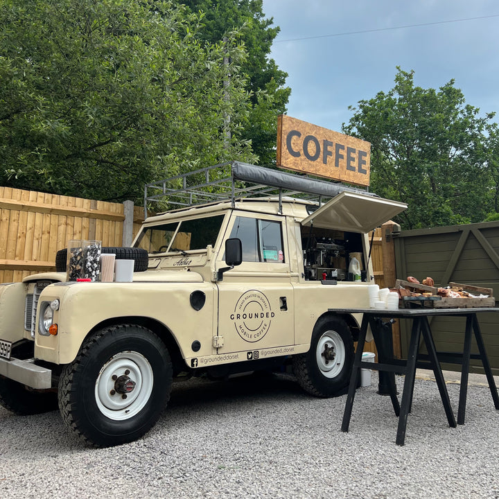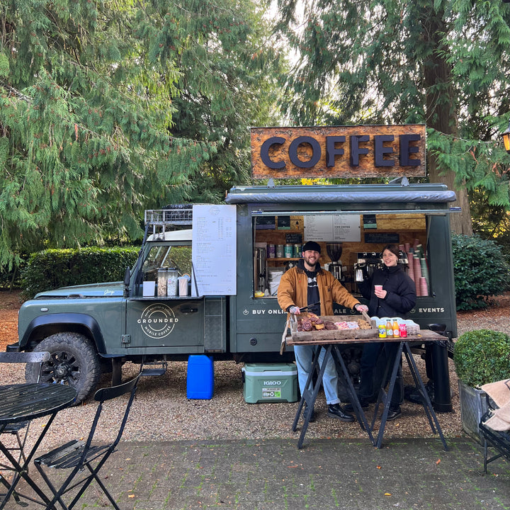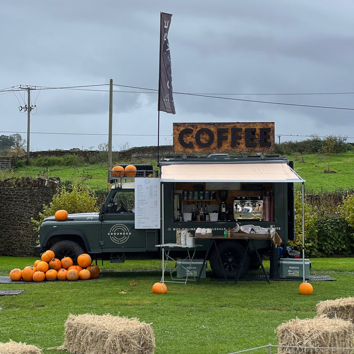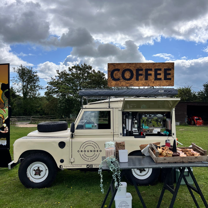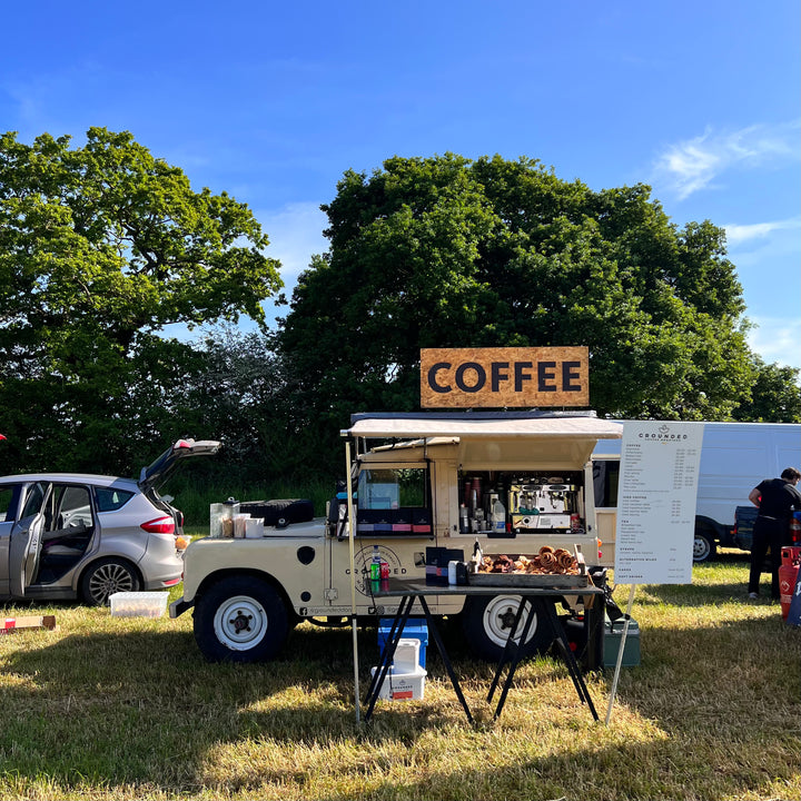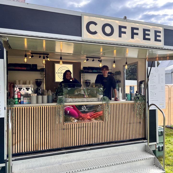 Over the years we have expanded quite a lot and have taken on some pretty epic events that require a larger coffee set up that can handle high numbers of visitors. So in early 2022 we decided to add Flynn to the fleet! In true Grounded fashion we bought a blank canvas exbition trailer and we kitted it out ourselves. He may be a black box trailer but he looks awesome and still gets tons of attention wherever we take him!